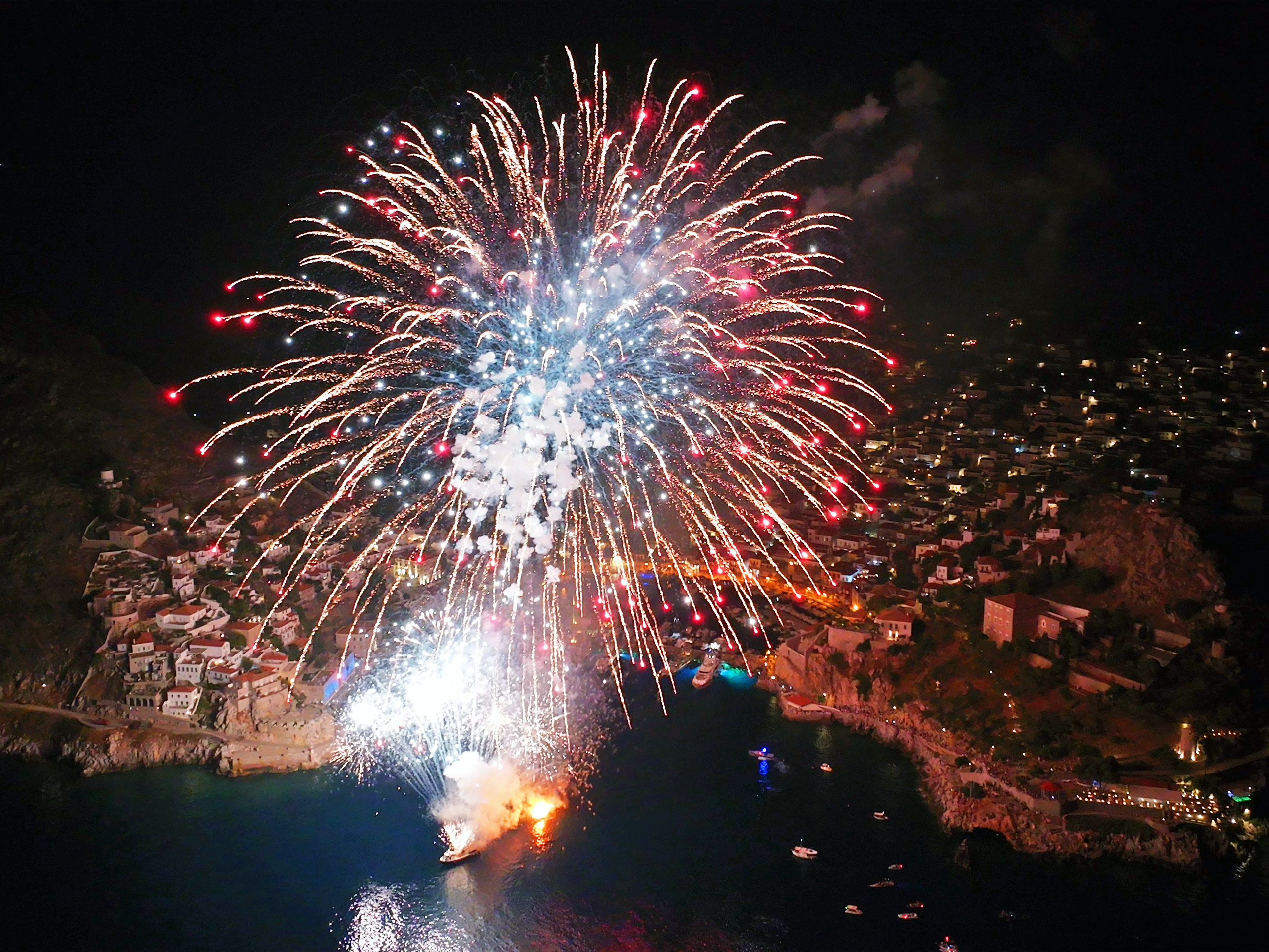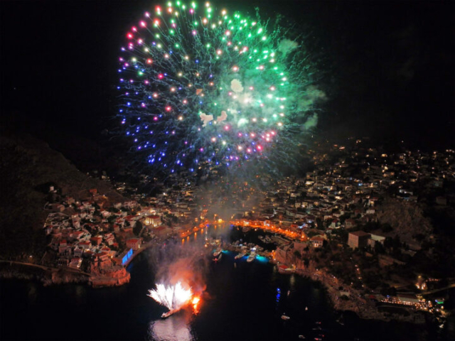 Τα «Μιαούλεια» είναι εορταστικές εκδηλώσεις προς τιμήν του Ναυάρχου Ανδρέα Μιαούλη με αναπαράσταση της Ναυμαχίας του Γέροντα με πυροτεχνήματα και τη συμμετοχή του Πολεμικού Ναυτικού. Εναέριες λήψεις – Αεροφωτογράφηση : Chris Giatrakos